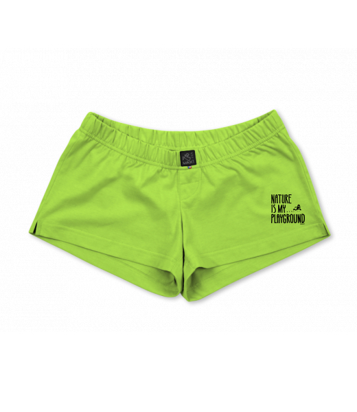 Women's shorts DOMACAT for woman with design 1160 NATURE IS MY PLAYGROUND in color PARROT GREEN