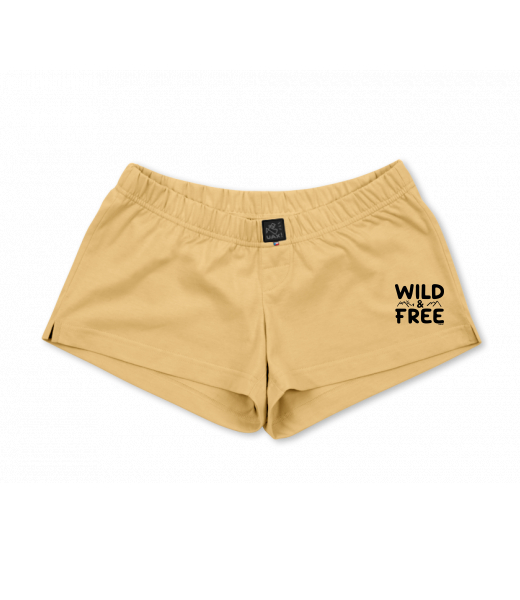 Women's shorts DOMACAT for woman with design 1161 WILD AND FREE in color MUSTARD