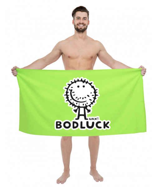 We make sustainable UAX clothing! - hand sewn in the Czech Republic uaxWomen uaxCyclingTowelsPRINTED BIG TOWELSdesign 1002 - BODLUCKFLUO GREEN