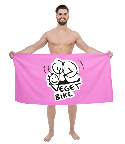 The original towel imprinted with UAX! Cycling for woman with design 1003 VEGET BIKE in color INDIAN LILA