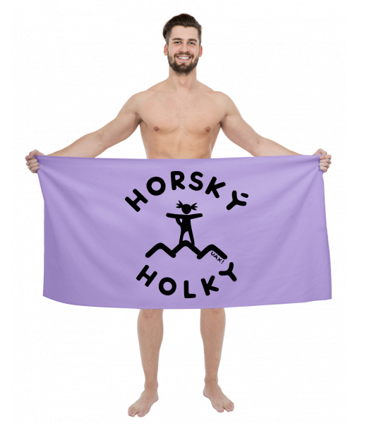 The original towel imprinted with UAX! Cycling for woman with design 1271 HORSKÝ HOLKY in color LAVENDER