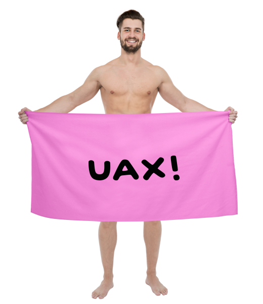 The original big towel imprinted with UAX! For printing big towels we use dye-sublimation technology guarantees excellent color saturation and an extensive range of colors. Big Towels UAX! We print on one side (the other side remains white and is used to blow-dry). One side of the big towel is 100% cotton for the drying of a second side big towel is 100% PES at that print printing! Wash at 60°C
