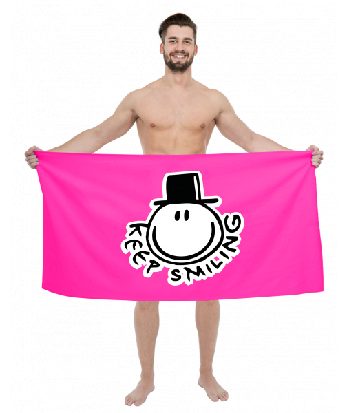 We make sustainable UAX clothing! - hand sewn in the Czech Republic uaxWomen uaxCyclingTowelsPRINTED BIG TOWELSdesign 517 - KEEP SMILINGFLUO PINK