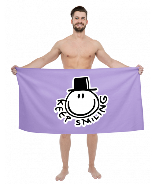 We make sustainable UAX clothing! - hand sewn in the Czech Republic uaxWomen uaxCyclingTowelsPRINTED BIG TOWELSdesign 517 - KEEP SMILINGLAVENDER