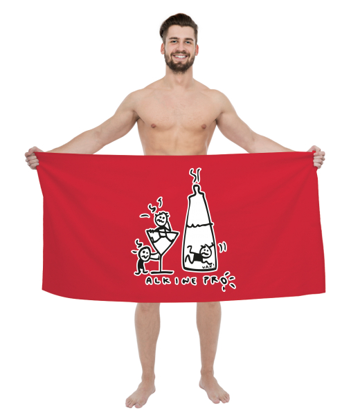The original towel imprinted with UAX! Cycling for woman with design 518 ALKINE PRO in color RED
