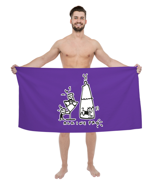 The original towel imprinted with UAX! Cycling for woman with design 518 ALKINE PRO in color VIOLET
