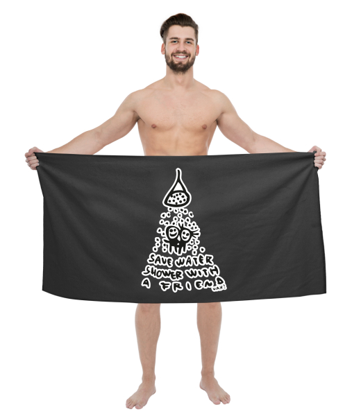 We make sustainable UAX clothing! - hand sewn in the Czech Republic uaxWomen uaxCyclingTowelsPRINTED BIG TOWELSdesign 519 - SAVE WATERBLACK