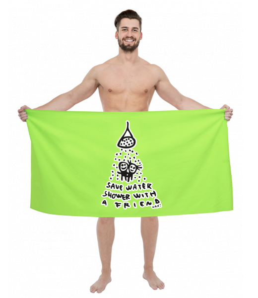 We make sustainable UAX clothing! - hand sewn in the Czech Republic uaxWomen uaxCyclingTowelsPRINTED BIG TOWELSdesign 519 - SAVE WATERFLUO GREEN