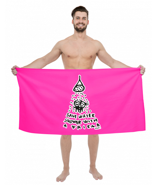We make sustainable UAX clothing! - hand sewn in the Czech Republic uaxWomen uaxCyclingTowelsPRINTED BIG TOWELSdesign 519 - SAVE WATERFLUO PINK