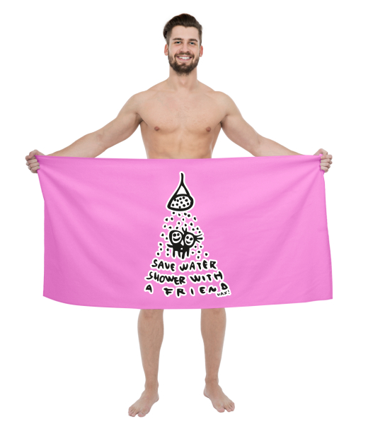 The original towel imprinted with UAX! Cycling for woman with design 519 SAVE WATER in color INDIAN LILA