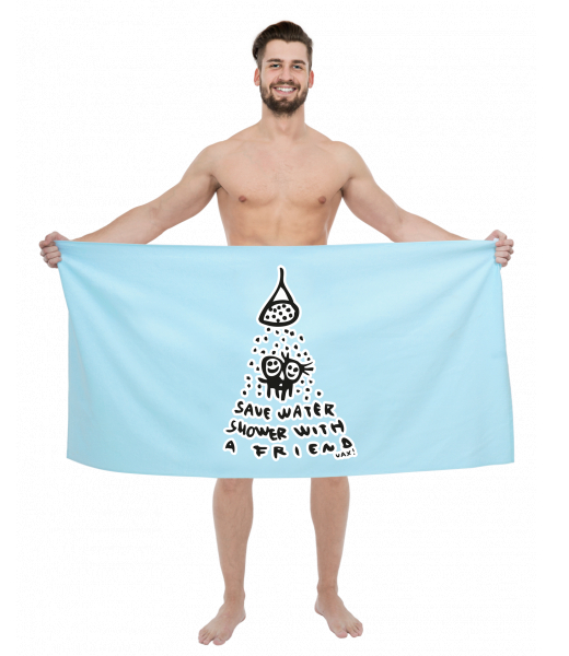 We make sustainable UAX clothing! - hand sewn in the Czech Republic uaxWomen uaxCyclingTowelsPRINTED BIG TOWELSdesign 519 - SAVE WATERPASTEL BLUE