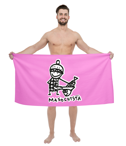 The original towel imprinted with UAX! Cycling for woman with design 523 MASOCHYSTA in color INDIAN LILA