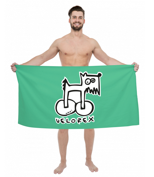 The original towel imprinted with UAX! Cycling for woman with design 598 VELOREX in color EUCALYPTO GREEN