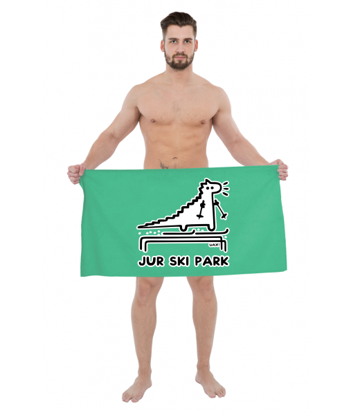 The original towel imprinted with UAX! Cycling for woman with design 1277 JUR SKI PARK in color EUCALYPTO GREEN