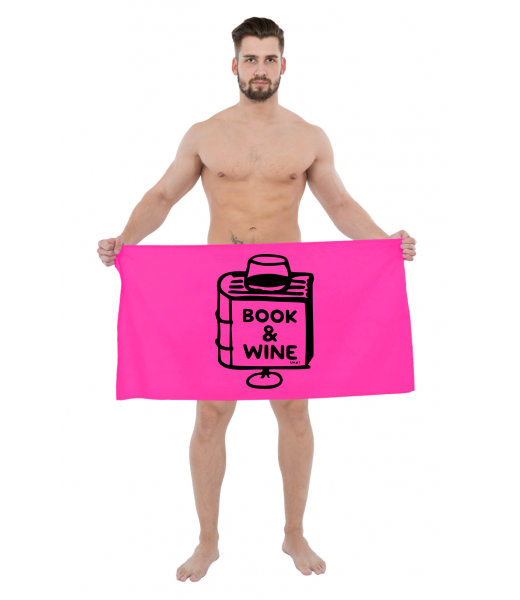 The original towel imprinted with UAX! Cycling for woman with design 1322 BOOK AND WINE in color FLUO PINK