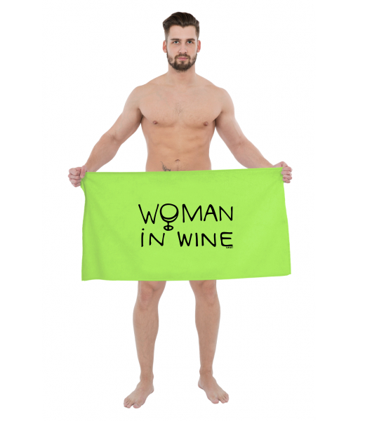 The original towel imprinted with UAX! Cycling for woman with design 1346 WOMAN IN WINE 1 in color FLUO GREEN