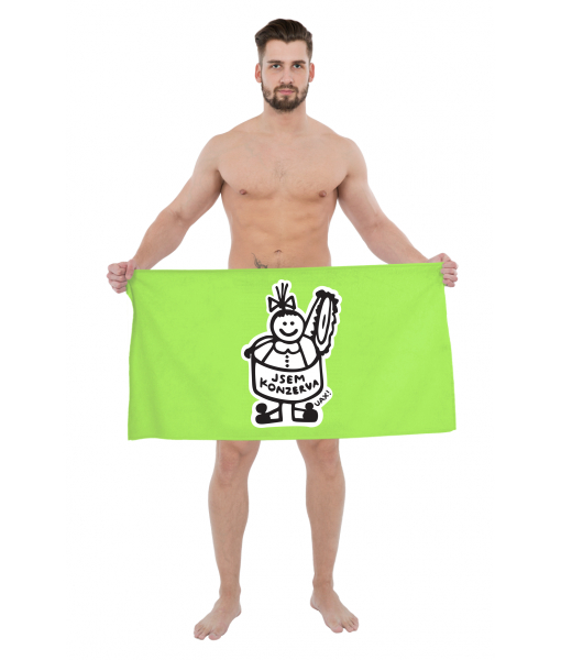We make sustainable UAX clothing! - hand sewn in the Czech Republic uaxWomen uaxCyclingTowelsPRINTED TOWELSdesign 1353 - JSEM KONZERVA WOMENFLUO GREEN