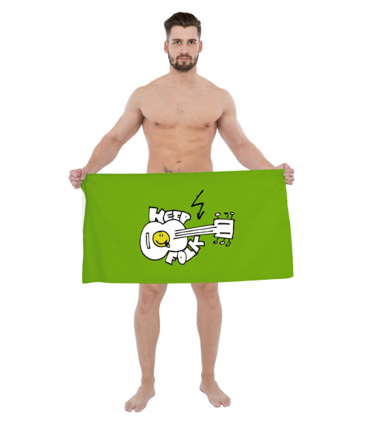 The original towel imprinted with UAX! Cycling for woman with design 441 KEEP FOLK in color PARROT GREEN