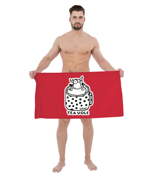 The original towel imprinted with UAX! Golf collection for woman with design 1124 TEA VOLE in color RED