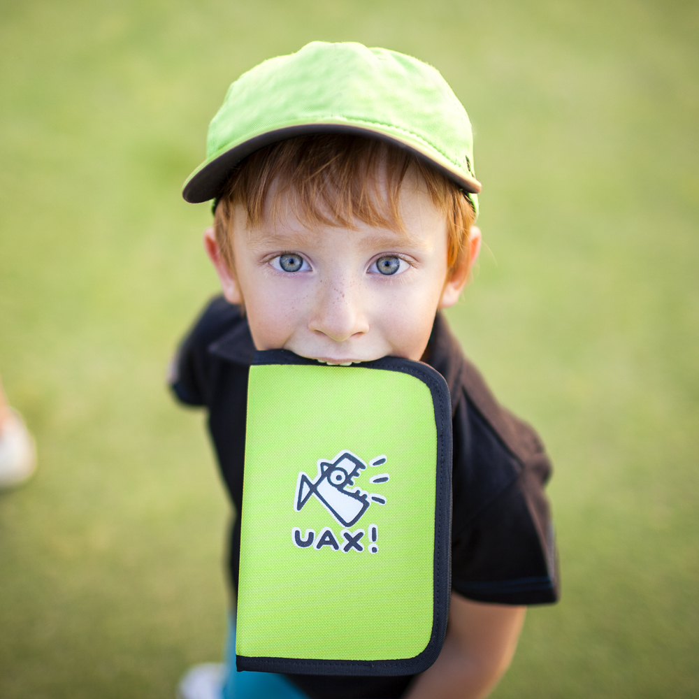 GOLF SCORECARD HOLDER UAX! protects against damage to your scorecard. GOLF SCORECARD HOLDER UAX! It is made from kortexin (100% polyester fabric PES), which is water washable. On the front side you can choose one of the original prints with an optimistic view of the world, according to the current offer - Mix & Match.