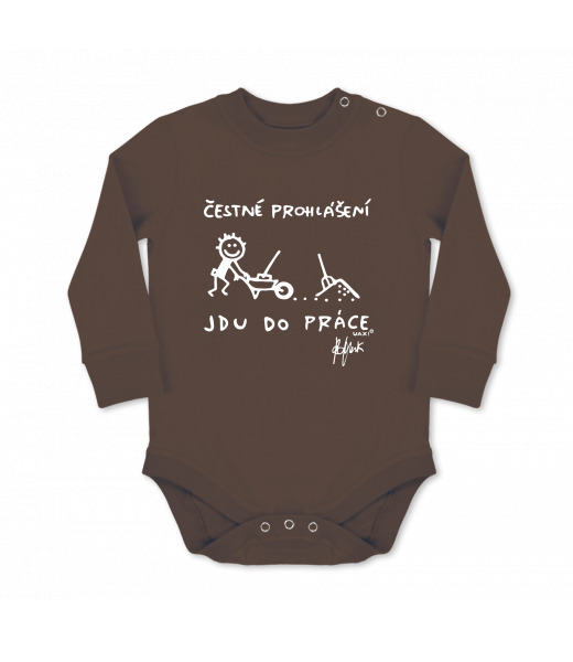 UAX baby body Ski collection for woman with design 1304 ČESTNÉ PROHLÁŠENÍ JDU DO PRÁCE in color CHESTNUT