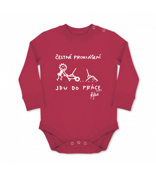 UAX baby body Ski collection for woman with design 1304 ČESTNÉ PROHLÁŠENÍ JDU DO PRÁCE in color CHILLY PEPPER RED