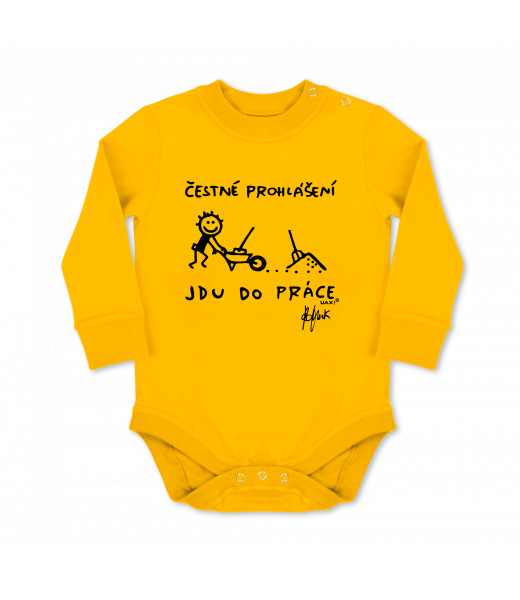 UAX baby body Ski collection for woman with design 1304 ČESTNÉ PROHLÁŠENÍ JDU DO PRÁCE in color GOLDEN CREAM