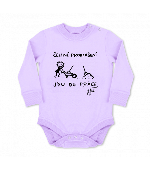 UAX baby body Ski collection for woman with design 1304 ČESTNÉ PROHLÁŠENÍ JDU DO PRÁCE in color LAVENDER