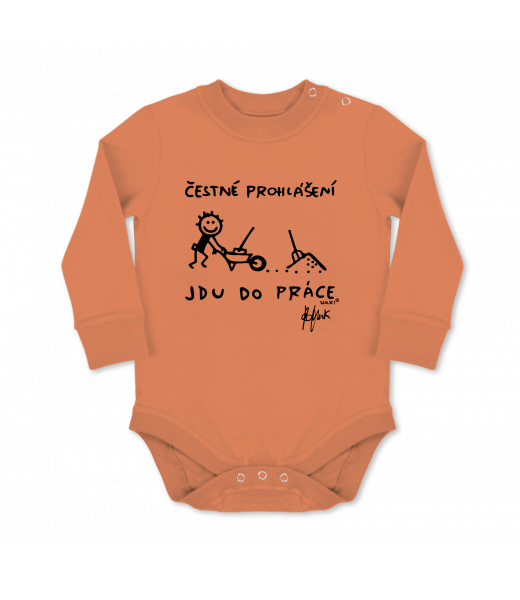 UAX baby body Ski collection for woman with design 1304 ČESTNÉ PROHLÁŠENÍ JDU DO PRÁCE in color MANDARIAN ORANGE