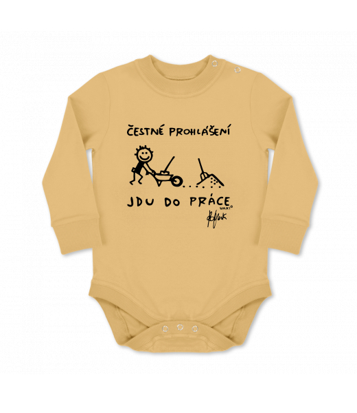 UAX baby body Ski collection for woman with design 1304 ČESTNÉ PROHLÁŠENÍ JDU DO PRÁCE in color MUSTARD