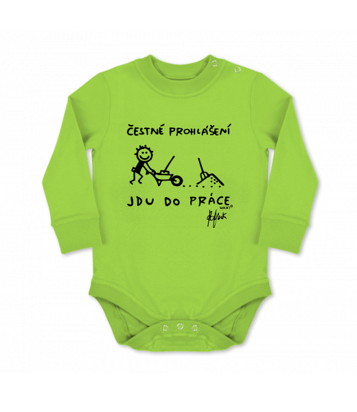 UAX baby body Ski collection for woman with design 1304 ČESTNÉ PROHLÁŠENÍ JDU DO PRÁCE in color PARROT GREEN