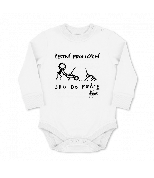 UAX baby body Ski collection for woman with design 1304 ČESTNÉ PROHLÁŠENÍ JDU DO PRÁCE in color WHITE