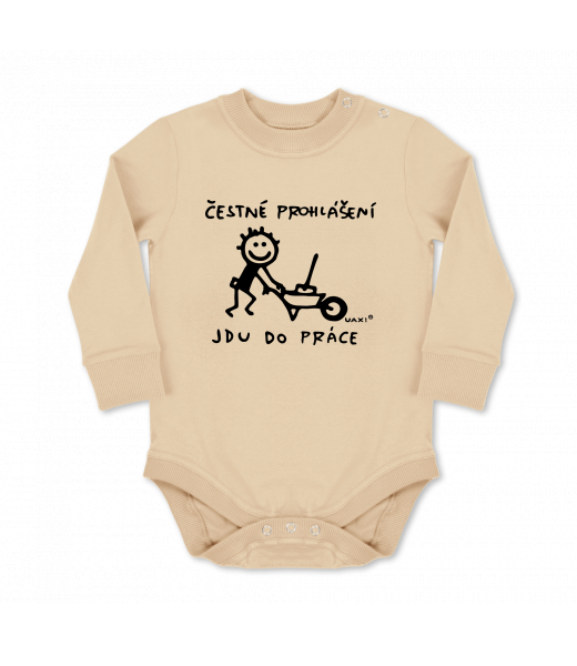 UAX baby body Ski collection for woman with design 1305 ČESTNÉ PROHLÁŠENÍ JDU DO PRÁCE 2 in color CARAMEL