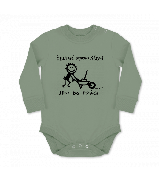 UAX baby body Ski collection for woman with design 1305 ČESTNÉ PROHLÁŠENÍ JDU DO PRÁCE 2 in color OLIVA