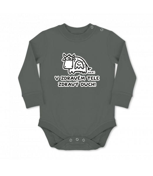 UAX baby body Ski collection for woman with design 1309 V ZDRAVÉM TELE ZDRAVÝ DUCH in color DARK GRAY