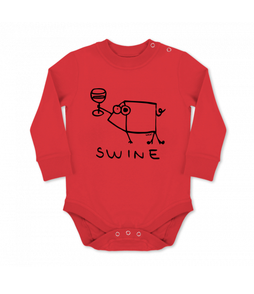 UAX baby body Ski collection for woman with design 1323 SWINE in color RED
