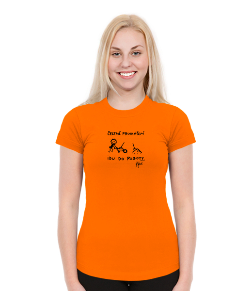 T-SHIRTS SKRATDA NEW Ski collection for woman with design 1303 ČESTNÉ PROHLÁŠENÍ IDU DO ROBOTY in color SIGNAL ORANGE
