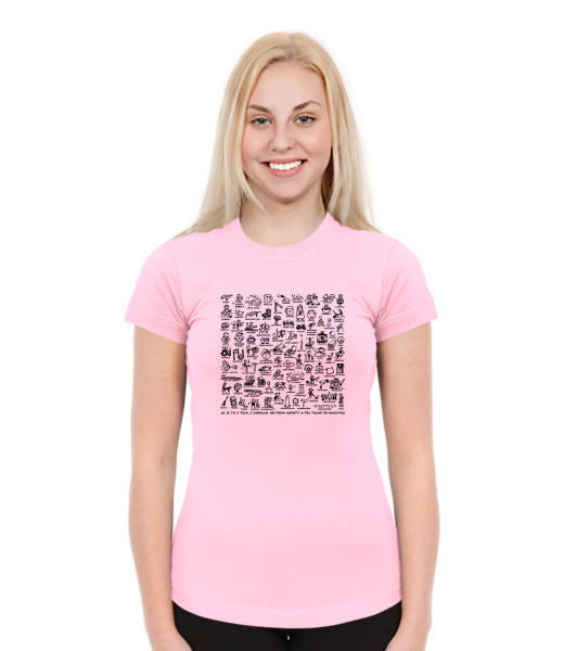 Women's cotton shirt SKRATDA NEW classical style t-shirt is perfect for everyday casual wear, but also leisure activities. Fitted women's t-shirt with Ribe around his neck. The rounded of the bottom front edge. Of the rear part of the slightly elongated. Made from 100% cotton, front printing choice. Choice of many colors. Very comfortable sports shirt SKRATDA NEW UAX! Sew and print in the Czech Republic!