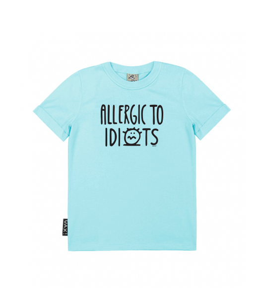 We make sustainable UAX clothing! - hand sewn in the Czech Republic uaxWomen uaxSki collectionT-shirtsSKRATDA OHdesign 1354 - ALLERGIC TO IDIOTSPASTEL BLUE