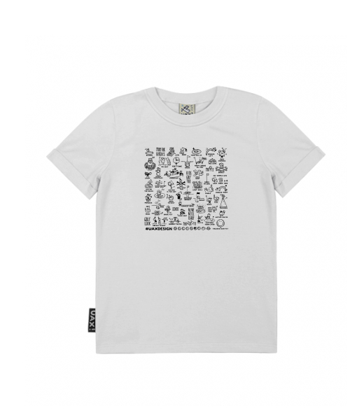 T-shirt cut and processing: Classic straight loose cut of the t-shirt (not oversize). The neckline is sewn with elastic ribbed trim. Double seams at the neck, on the sleeves and bottom hem. Bent sleeves. The t-shirt has a woven UAX label sewn into the side seam.