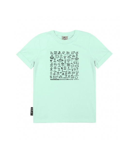 T-shirt cut and processing: Classic straight loose cut of the t-shirt (not oversize). The neckline is sewn with elastic ribbed trim. Double seams at the neck, on the sleeves and bottom hem. Bent sleeves. The t-shirt has a woven UAX label sewn into the side seam.