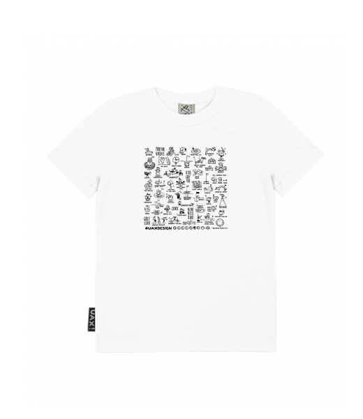 T-shirt cut and processing: Classic straight loose cut of the t-shirt (not oversize). The neckline is sewn with elastic ribbed trim. Double seams at the neck, on the sleeves and bottom hem. Bent sleeves. The t-shirt has a woven UAX label sewn into the side seam.