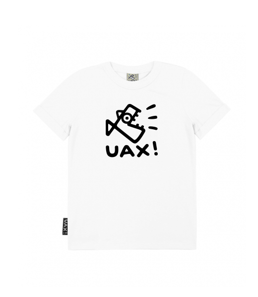 T-shirt cut and processing: Classic straight loose cut of the t-shirt (not oversize). The neckline is sewn with elastic ribbed trim. Double seams at the neck, on the sleeves and bottom hem. Bent sleeves. The t-shirt has a woven UAX label sewn into the side seam.