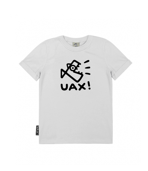 T-shirt cut and processing: Classic straight loose cut of the t-shirt (not oversize). The neckline is sewn with elastic ribbed trim. Double seams at the neck, on the sleeves and bottom hem. Bent sleeves. The t-shirt has a woven UAX label sewn into the side seam.