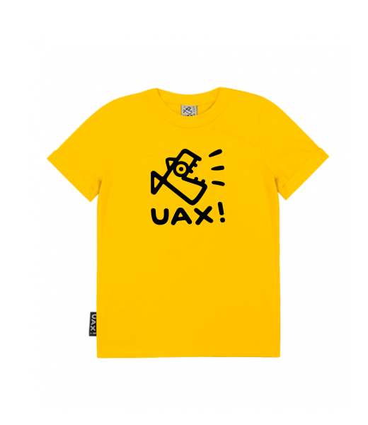 T-shirt cut and processing: Classic straight loose cut of the t-shirt (not oversize). The neckline is sewn with elastic ribbed trim. Double seams at the neck, on the sleeves and bottom hem. Bent sleeves. The t-shirt has a woven UAX label sewn into the side seam.