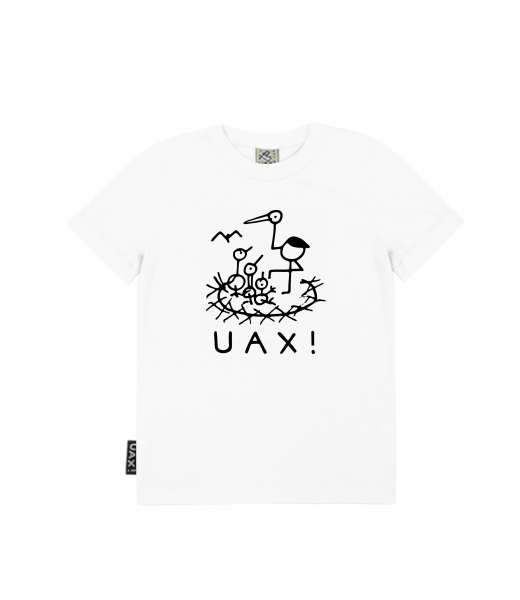 T-shirt cut and processing: Classic straight loose cut of the t-shirt (not oversize). The neckline is sewn with elastic ribbed trim. Double seams at the neck, on the sleeves and bottom hem. Bent sleeves. The t-shirt has a woven UAX label sewn into the side seam.