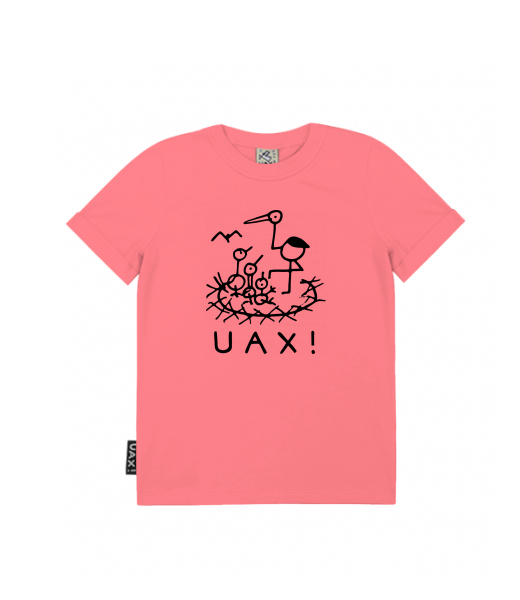 T-shirt cut and processing: Classic straight loose cut of the t-shirt (not oversize). The neckline is sewn with elastic ribbed trim. Double seams at the neck, on the sleeves and bottom hem. Bent sleeves. The t-shirt has a woven UAX label sewn into the side seam.