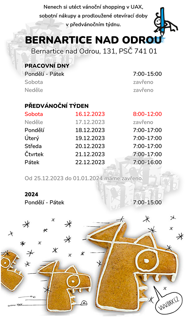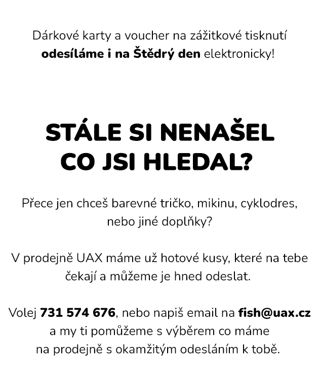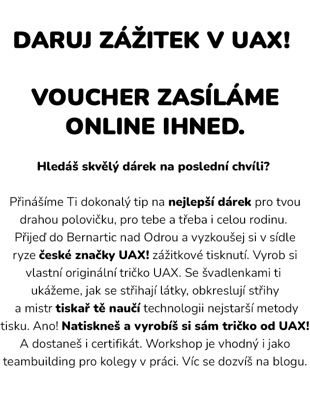Toto obchodní sdělení je rozesíláno zákazníkům společnosti UAX s.r.o. v souladu se zákonem č. 480/2004 SB.